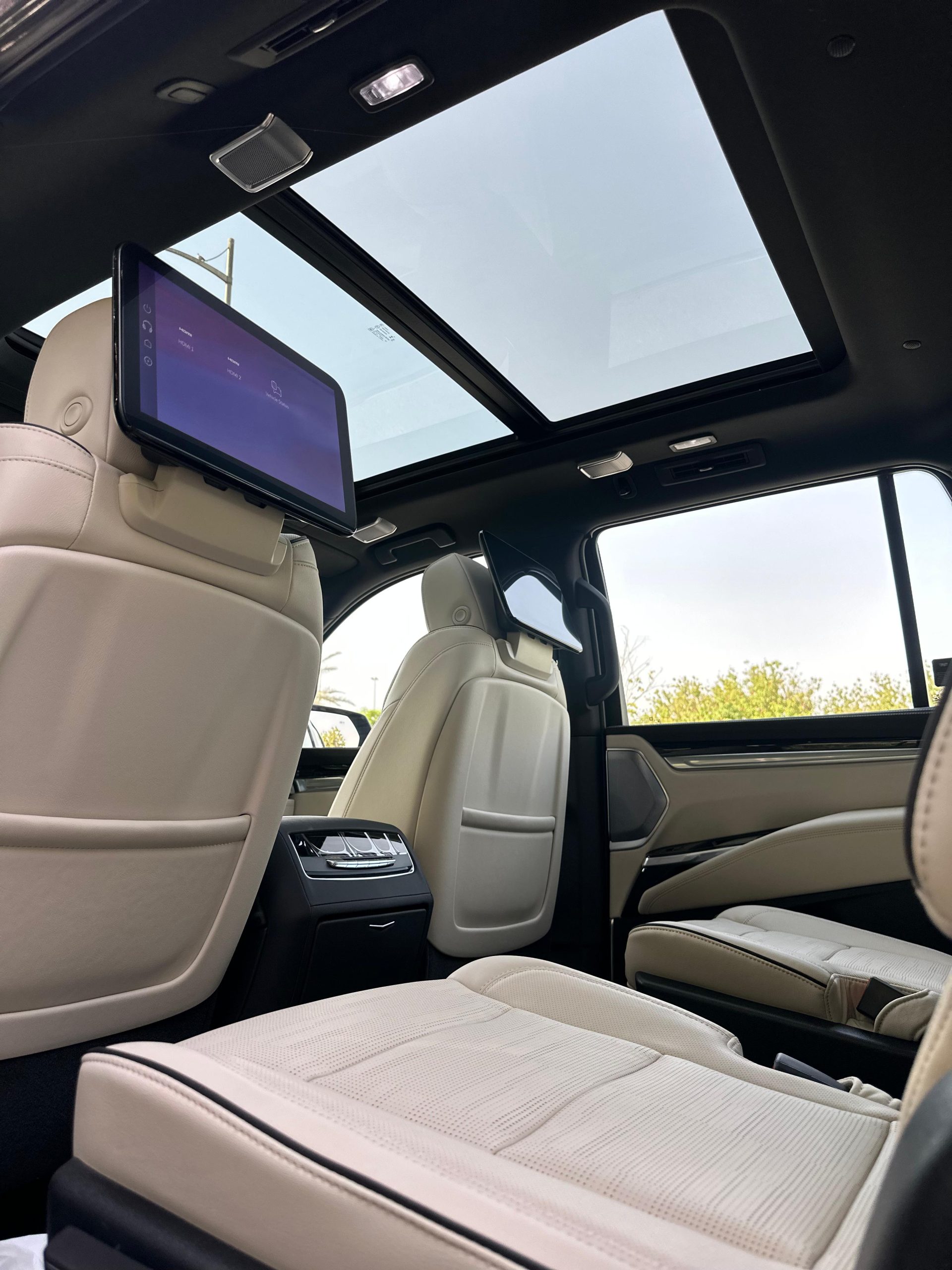 - Advanced Entertainment: The Cadillac Escalade rental in Dubai from Al Rafaheia is truly a digital entertainment powerhouse. With a premium sound system combined with input options such as an auxiliary port, MP3 player, and a traditional CD player, traffic just got a little less boring.